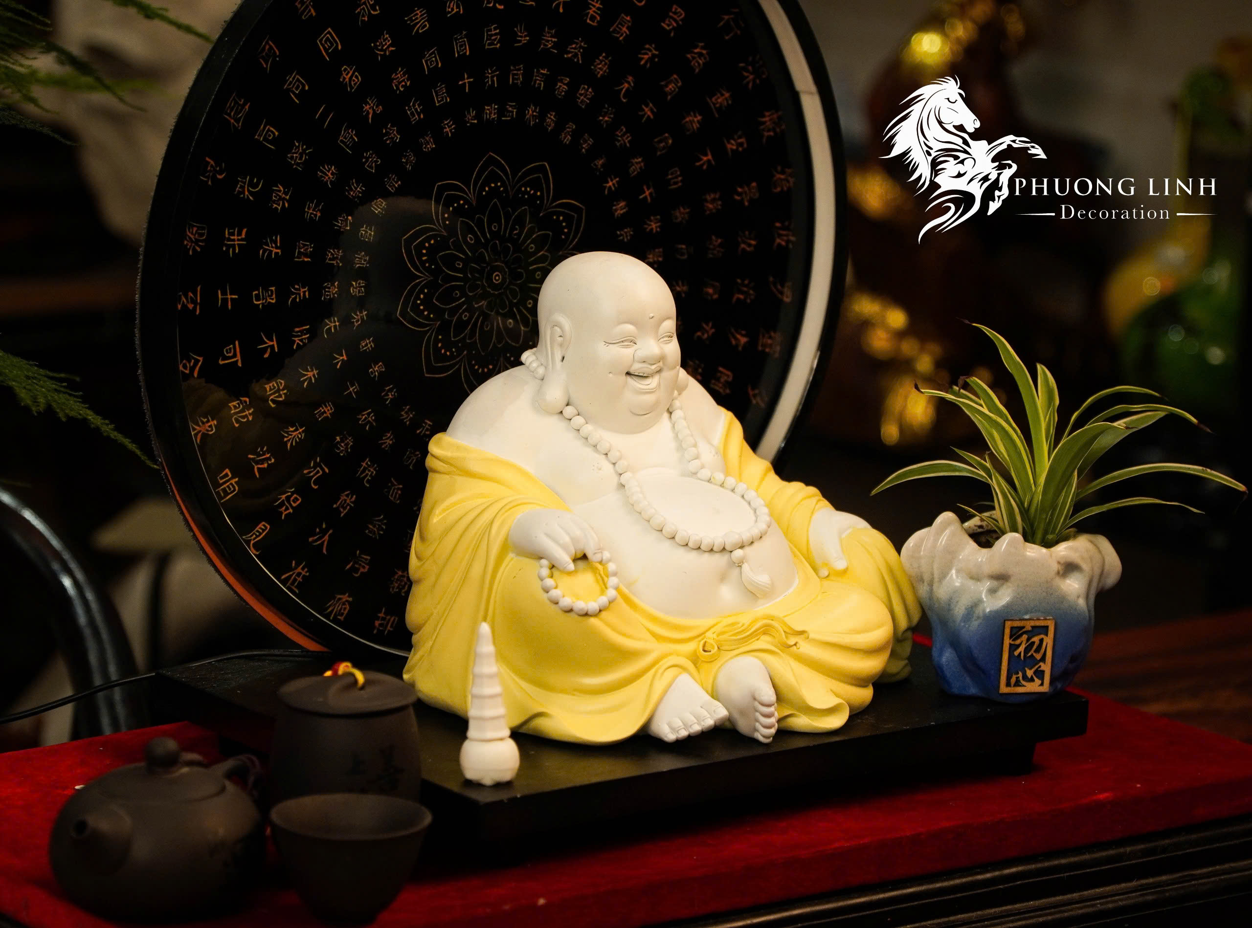Tài Lộc và May Mắn: Màu vàng của y áo và chiếc bụng lớn tượng trưng cho sự sung túc, của cải dồi dào.