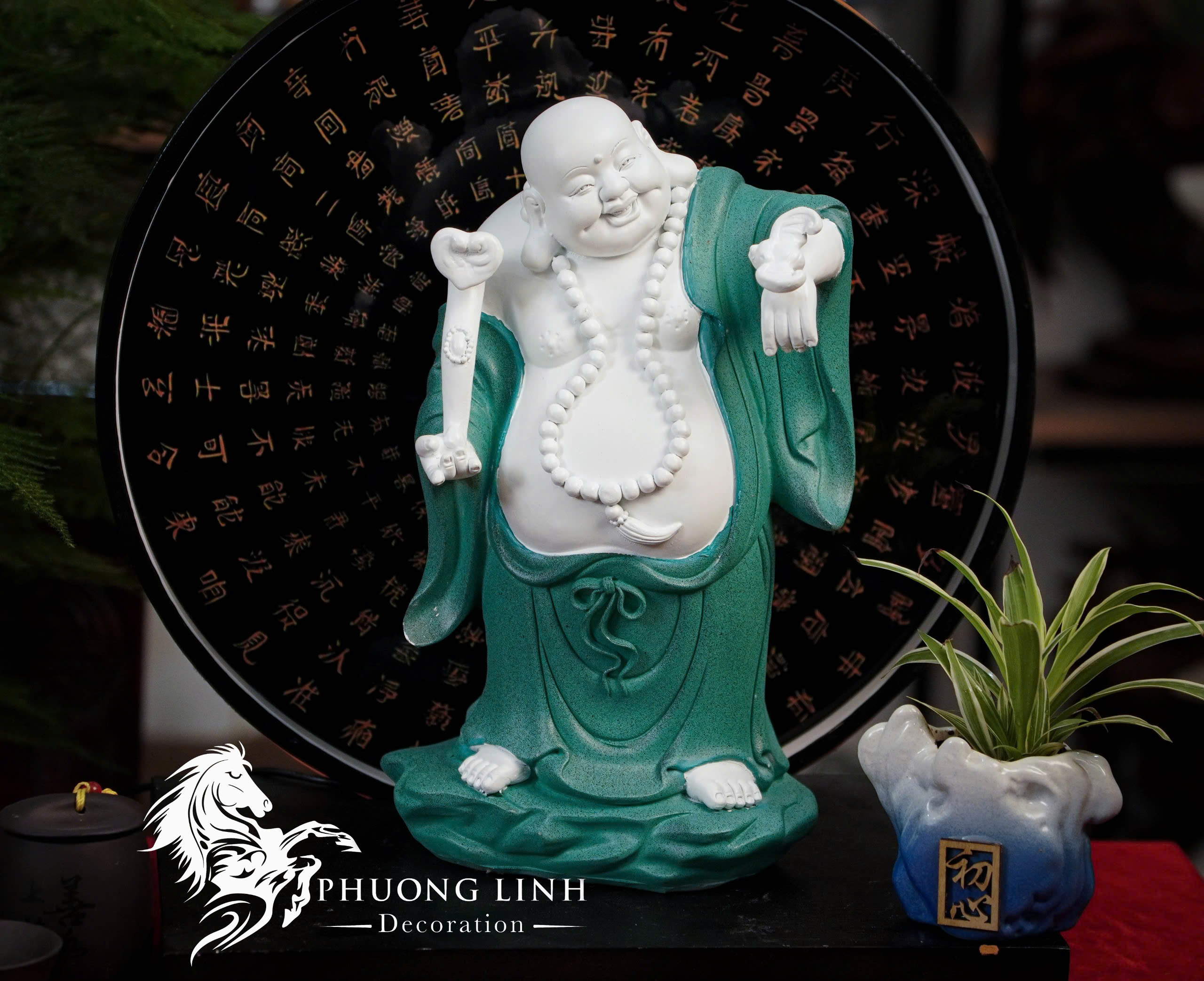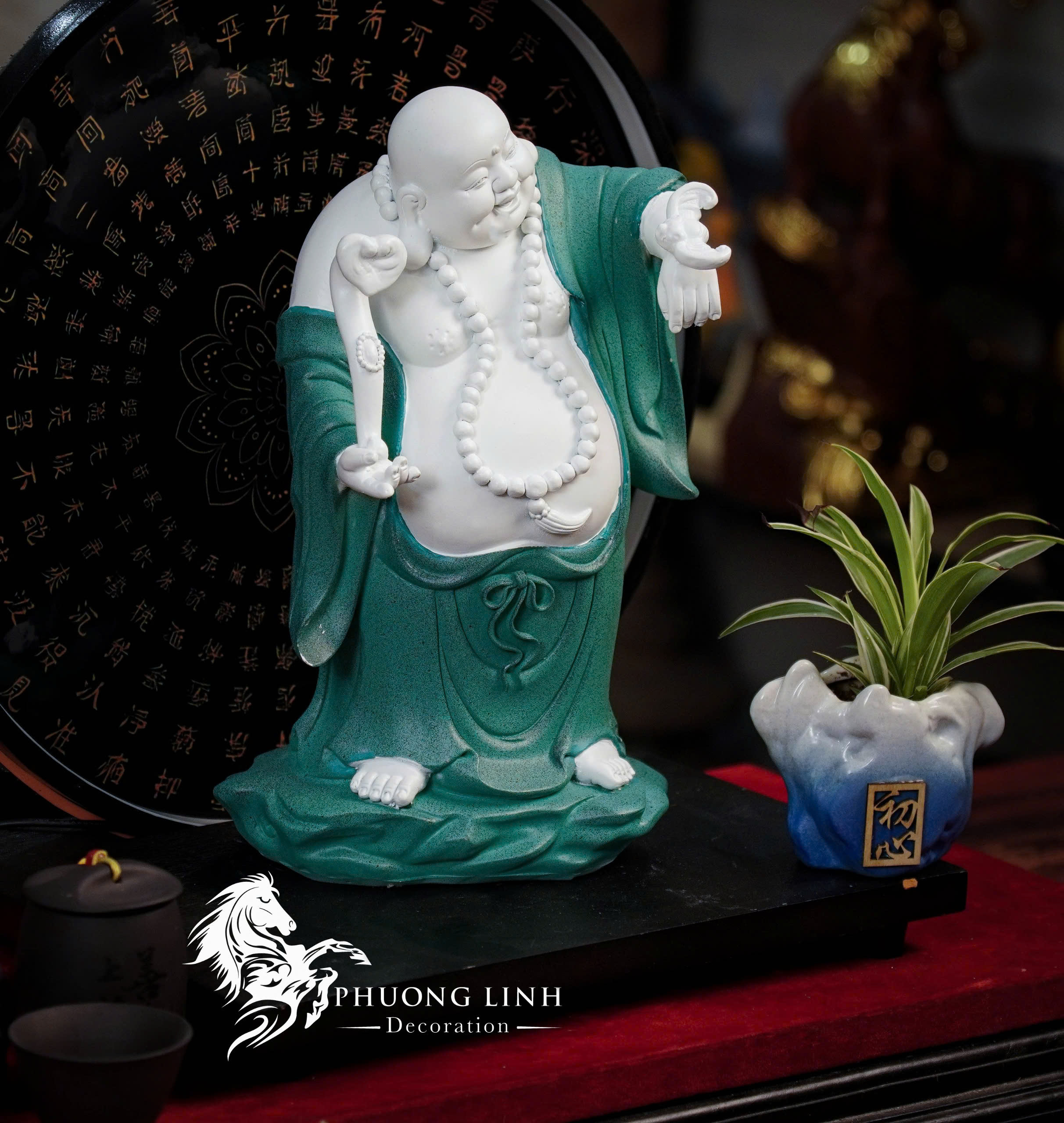 Phúc Tâm Xanh – An Lạc: Màu xanh của áo tượng trưng cho hành Mộc và sự bình yên, hy vọng. “Phúc Tâm” ngụ ý về một tâm hồn rộng mở, bao dung, mang lại phúc đức cho gia chủ.